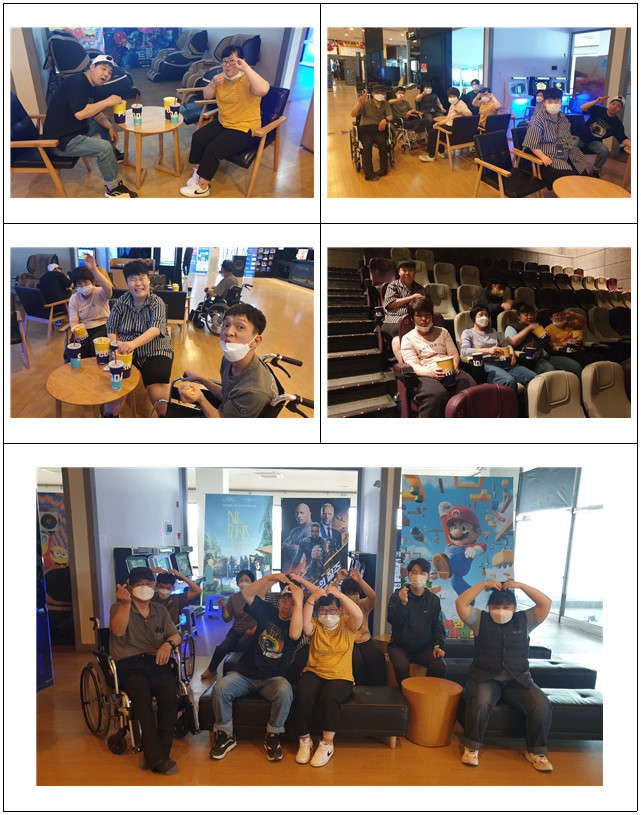 [세종장애인보호작업장] 사회적응훈련 영화감상 프로그램(메가박스 조치원) 생산판매관리기사 0 816 2023.06.08 17:09 2023년 5월 17일 수요일 !메가박스 세종(조치원)에 방문하여 슈퍼 마리오 브라더스를 관람하였습니다.차량에 탑승하여 영화관으로 이동하는 동안 들뜬 모습으로 모두들 즐거워하였으며,맛있는 팝콘과 음료까지 먹으며 관람할 수 있어 신나는 시간이 되었습니다.다음에도 또 오고싶다는 의견이 많아 기회가 된다면 다양한 외부활동을 통해스트레스를 해소할 수 있도록 노력하겠습니다 !