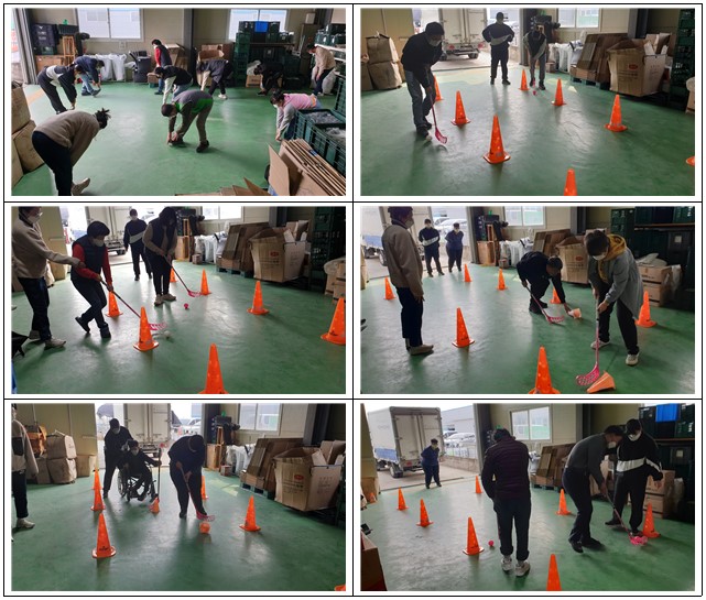[세종장애인보호작업장] 특수체육활동 - 플로어볼 생산판매관리기사 0 965 2023.06.08 17:18 2023년 3월 28일 화요일 !특수체육활동으로 플로어볼을 진행하였습니다.드리블에 어려움을 겪는 이용인은 공 대신 작은 콘을 드리블하는 방법으로 변형하여 진행하였으며,모두가 즐겁고 쉽게 참여할 수 있는 시간을 만들어가기 위해 노력하였습니다 !