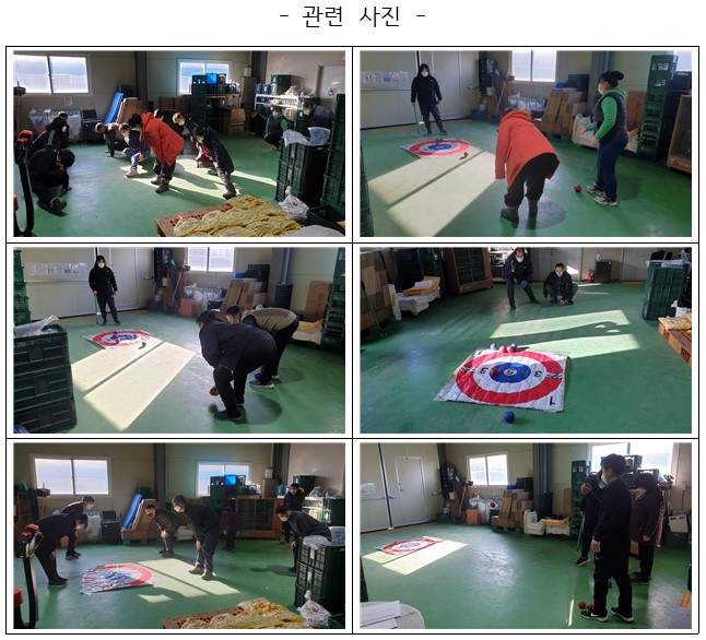 특수체육활동 - 플로어 컬링 생산판매관리기사 0 1135 2023.01.13 17:55 2023년 1월 3일 화요일 !!계묘년 새해 첫 프로그램으로 특수체육활동을 진행하였습니다.파란색과 빨간색으로 이루어진 말랑말랑한 공을 점수가 적혀있는 표적판에 넣는 활동으로안전사고 위험 없이 이용인 모두가 손쉽게 참여하고 즐길 수 있는 시간이 되었습니다.올해도 이용인들의 건강과 체력증진을 위해 열심히 노력하겠습니다! ♥