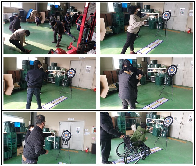 특수체육활동 - 한궁 생산판매관리기사 0 973 2023.02.21 19:21 2023년 2월 7일 화요일!특수체육활동으로 한궁이라는 종목을 진행하였습니다.한궁은 이용인들이 자주 접해보았던 활동으로 익숙해진 만큼 올바른 자세로 높은 점수를 얻거나반복적인 훈련에도 자세를 잡지 못해 한궁핀이 표적판에 미치지 못하는 등다양한 모습을 보이며 즐거운 시간을 보냈습니다.이용인들의 체력증진과 건강한 생활을 위해 항상 노력하겠습니다!