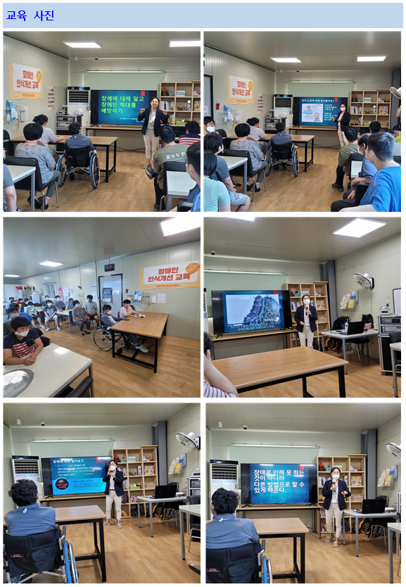 장애인에 대한 긍정적인 인식을 지니고 생활 속에서 장애인을 배려하는 삶을 알아볼 수 있었던 유익한 시간이었습니다.