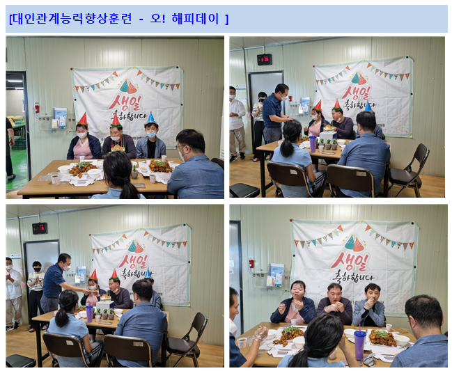 대인관계능력향상훈련 - 9월 생일파티 eun 0 1160 2022.10.05 09:15 세종장애인보호작업장에서는 9월에 생일을 맞이한 이용인의 생일파티를 진행하였습니다.코로나 19로 인해 직접 다과를 구입하러 가거나 직접 선물을 선택하지는 못했지만, 욕구에 따라 음식을 선택하고 동료 이용인과 함께 먹으며 즐거운 시간을 가졌습니다. 생일자 이용인 진심으로 생일 축하합니다~!!!