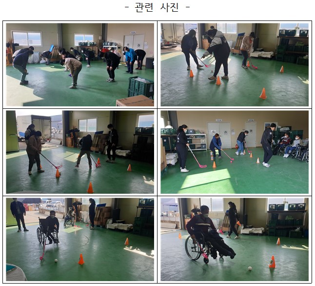 특수체육활동 - 플로어볼 생산판매관리기사 0 1102 2022.11.09 13:26 2022년 11월 8일 화요일 !특수체육활동으로 플로어볼이 진행되었습니다.플로어볼은 스틱과 공을 이용하여 드리블이나 콘을 맞추기 위한 슈팅 시 집중력이 필요한 종목으로공이 생각대로 움직이지 않아 당황하는 이용인도 발생하였으나,성공 시 상품으로 사탕을 준비하는 등 모두가 즐거워하며 적극적으로 참여할 수 있는 시간이 되었습니다!