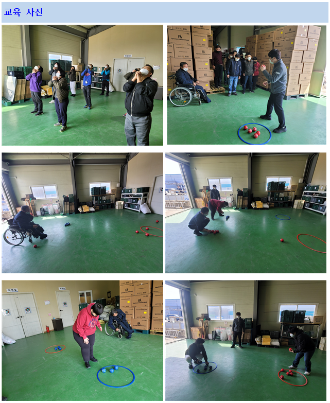 각 이용인 별로 보치아를 던지거나 굴리면서 표적구에 넣기 위해 집중하는 모습을 보였고 표적구를 빛나갔을 때 많이 아쉬워 하는 모습도 보였습니다. 이긴팀에게는 박수를 쳐주며 격려하는 시간도 보냈습니다.