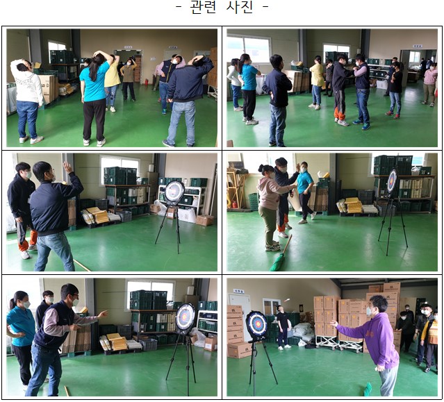 특수체육활동 - 한궁(04.12) 생산판매관리기사 0 1061 2022.04.15 14:26 금일 한궁이라는 체육활동을 진행하였습니다.질서 있게 줄을 서고 본인 차례가 오면 강사 선생님의 설명에 따라 평소에 자주 쓰는 손,자주 쓰지 않는 손을 번갈아가며 진행하였으며, 대부분의 이용인이 즐거워하며 참여하였습니다.양손운동을 통해 좌, 우 집중력과 팔의 유연성 및 근력을 키우고 신체의 좌우 평형성을 증진시킬 수있는 시간이 되었으며, 서로 격려하고 응원하며 친밀감을 높일 수 있는 기회가 되었습니다.