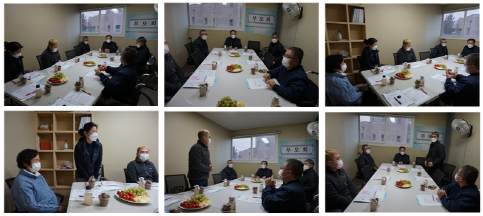 4. 간담회 내용 : 작업장 현황, 작업장의 변화(2021년 및 2022년), 2021년 프로그램 사업, 신규사업 홍보(소독업), 질의 응답 및 정보 공유 등등등